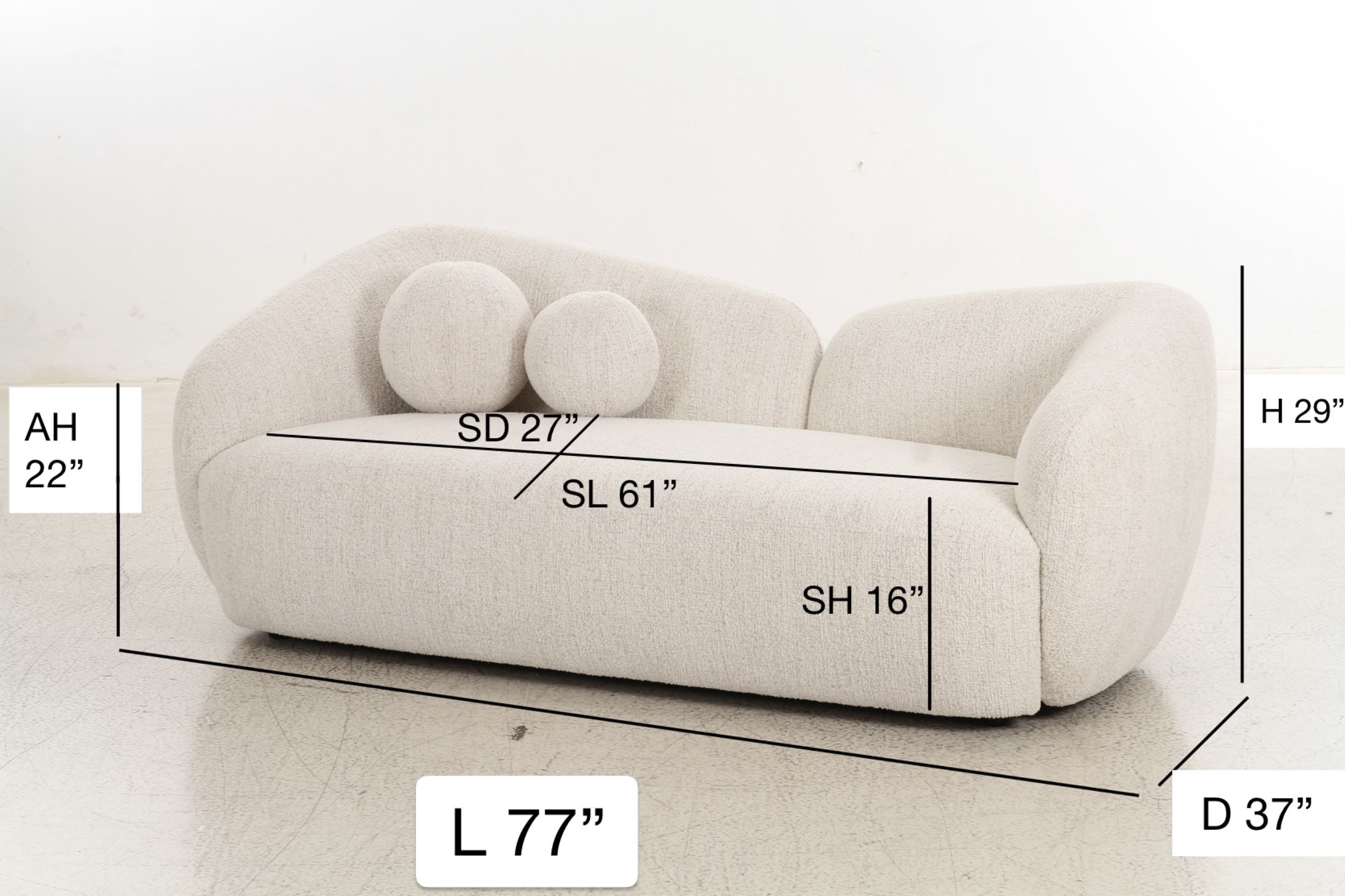 Bring effortless elegance and inviting comfort to your space with the Carmel Loveseat. Designed with a smooth, sculptural silhouette and soft curves, this piece offers a refined modern look while maintaining everyday coziness. The neutral textured upholstery blends seamlessly with a variety of décor styles, from contemporary to transitional and coastal-inspired interiors.